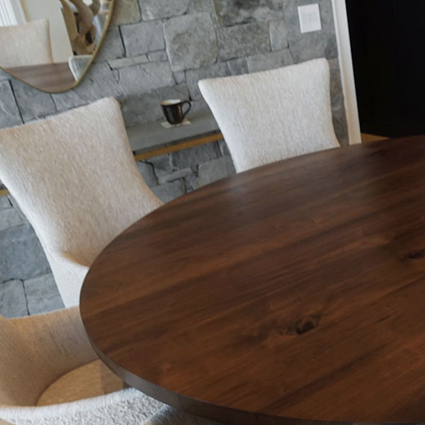 Contact us to discuss wood species and table base options for your round solid wood dining table. We offer instant quotes during business hours and can also go over stain choices, edge profile options and delivery & shipping considerations. We are here to help our clients and we are never "hard sell".
