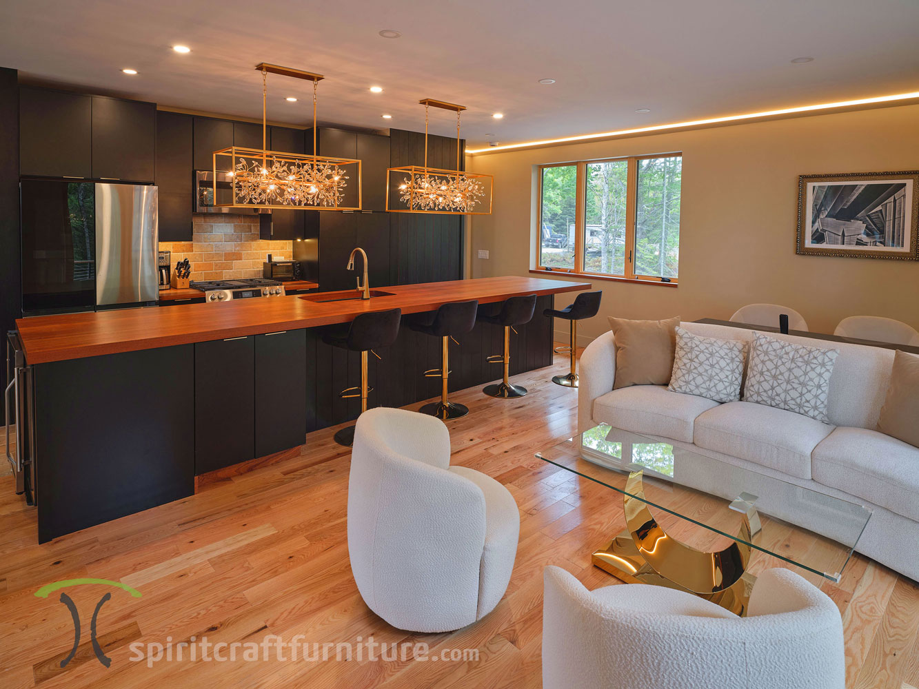 We specialize in quality live edge and wide plank solid wood kitchen island tops, counters & counter tops and bar tops. Our solid wood bench tops, counters, built in desktop, kitchen island and bar tops are made in the USA, handcrafted and fabricated at our Chicago area furniture workshop located in Dundee, Illinois. All tops are finished in our zero water ring and stain free easy care 2k polyurethane.